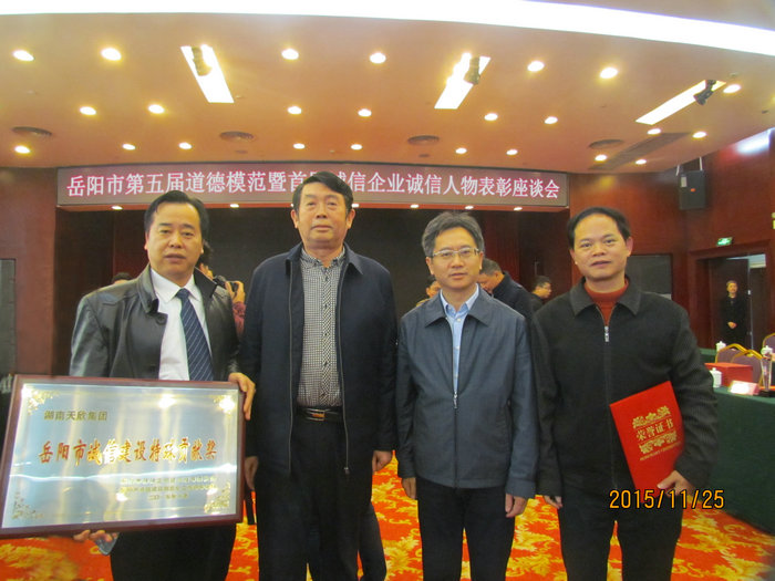 湖南天欣集團被授予“岳陽市誠信建設(shè)特殊貢獻獎”
