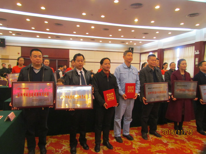 ▲市首屆誠信企業(yè)特殊貢獻獎單位 —— 湖南天欣集團、岳陽市煙草專賣局、十三村等誠信企業(yè)合影。
